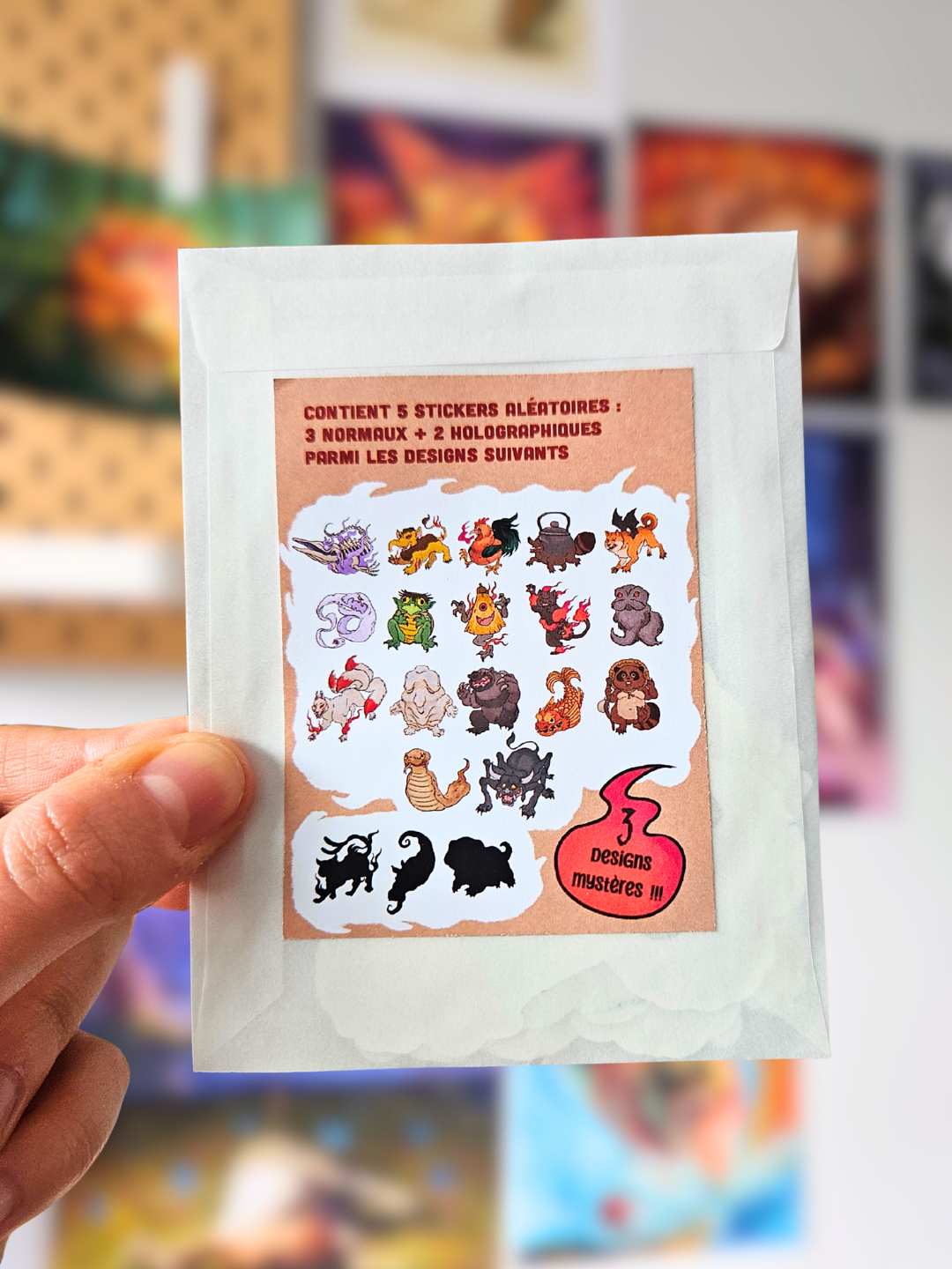 Contient 5 stickers aléatoires, dont 3 normaux et 2 holographiques, parmi les 20 designs possibles !!