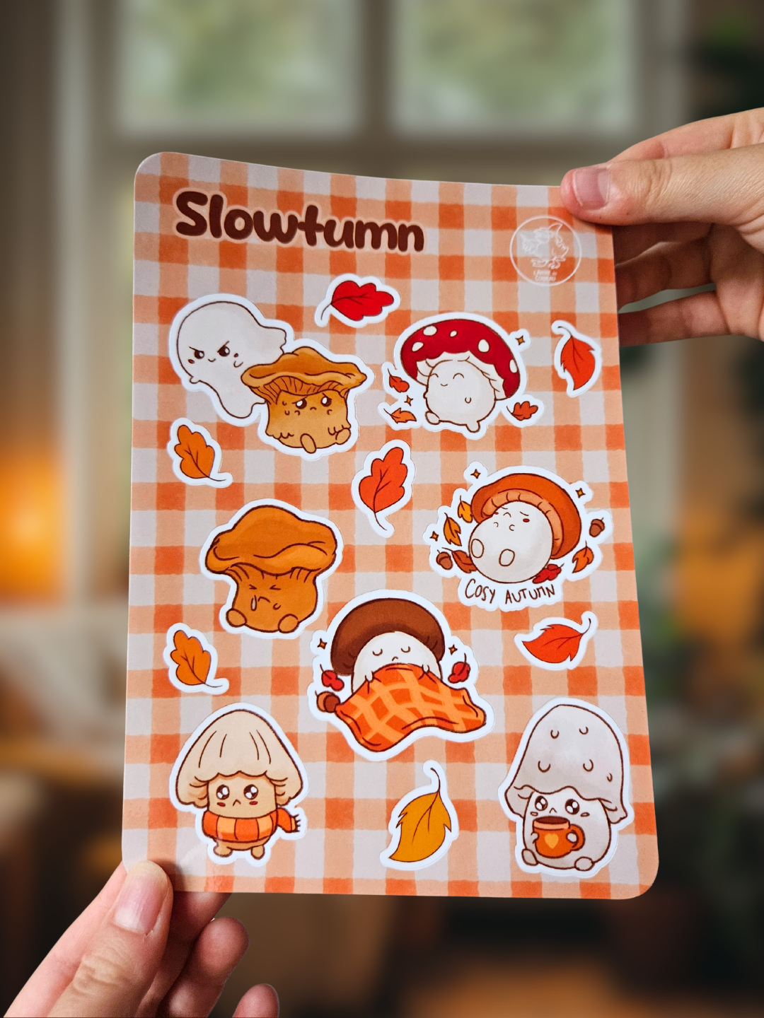 Planche de stickers de petits champignons tout cosy pour attaquer l'automne en douceur