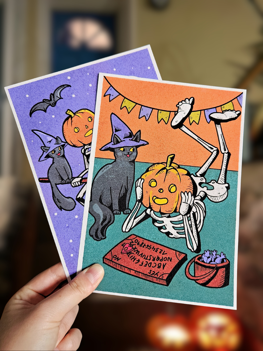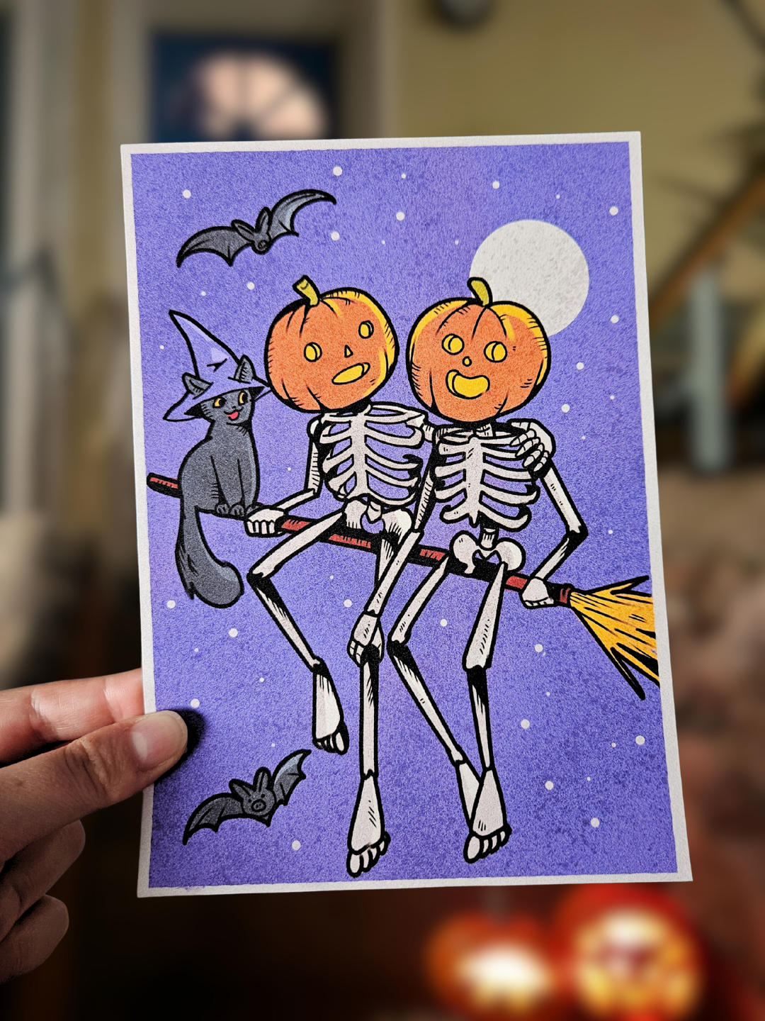 Print de citrouilles profitant d'un vol romantique sur leur balai